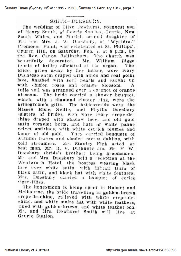 SMITHCliveDewhurst-DUESBURYMuriel-Wedding-SundayTimes-1914-02-15-p7