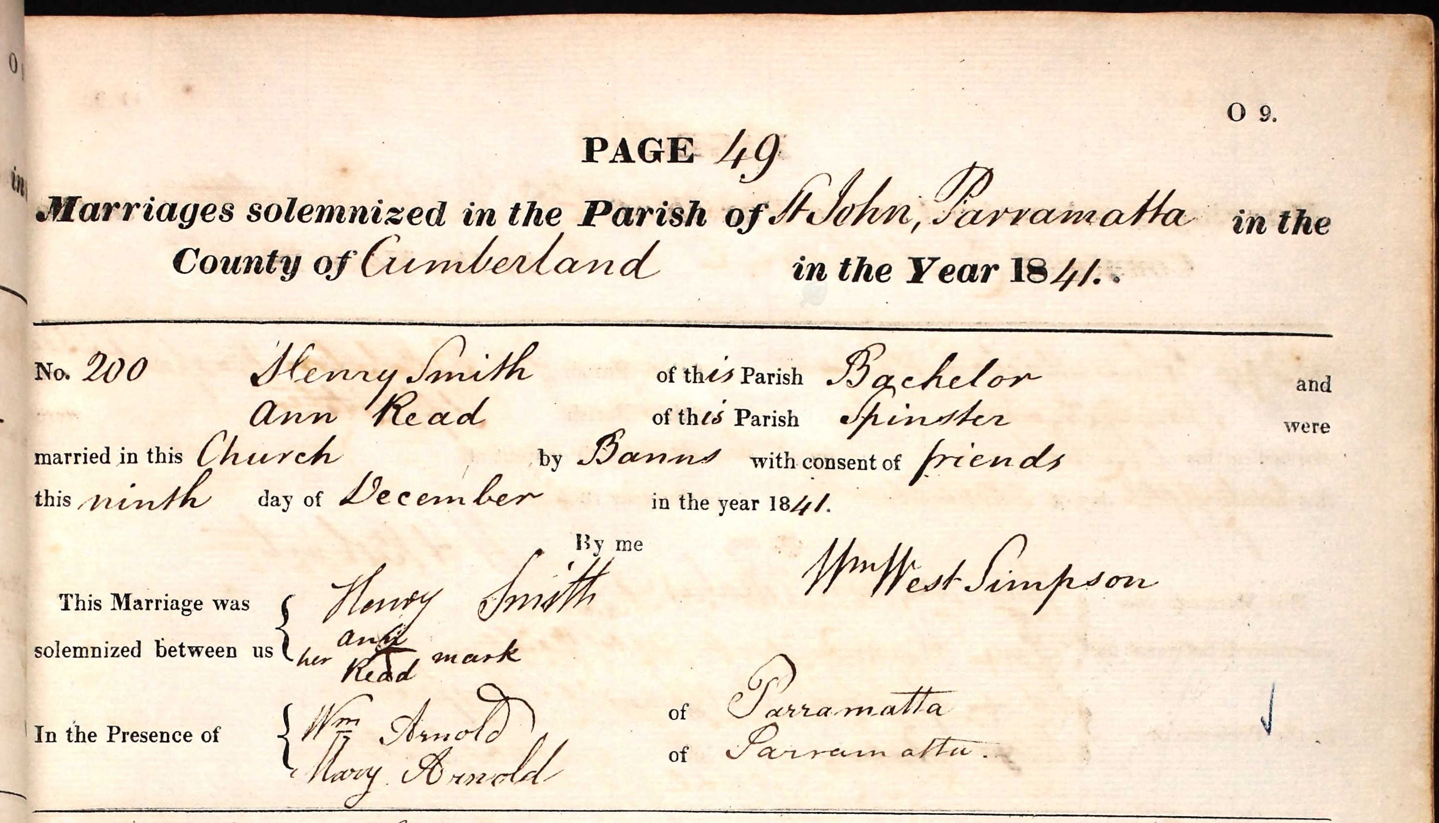 SMITHHenry-READAnn-Marriage-1841-12-09-StJohns-Parramatta